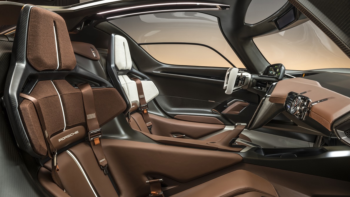 Una ligera cúpula de cristal con un exoesqueleto de plástico reforzado con fibra de carbono se extiende sobre ambos ocupantes. Las puertas de estilo Le Mans están fijadas a los pilares A y al techo. Se abren hacia delante y hacia arriba. Este tipo de puerta se utilizó anteriormente en el legendario Porsche 917.