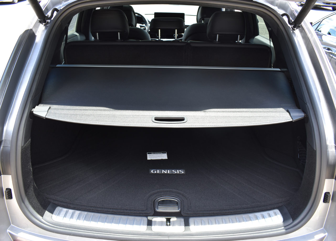 También hay una ligera reducción en el espacio de carga, aunque el GV70 Eléctrico todavía tiene unos decentes 28,7 pies cúbicos detrás de los asientos traseros, o 56,5 cuando están plegados.