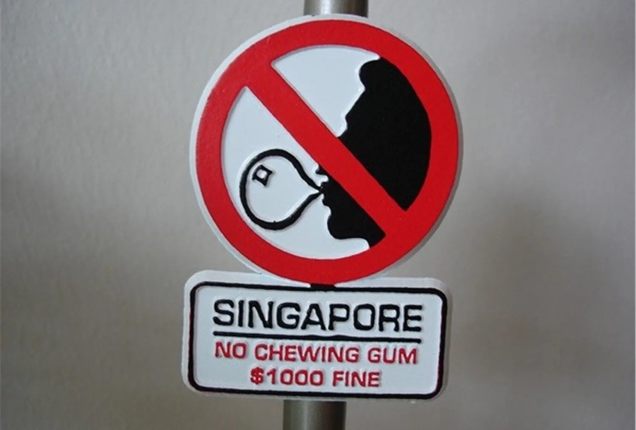 Singapur prohíbe caminar desnudo en público, incluso en casa si es visible desde la calle, con multas de hasta S$2,000 (≈$1,500 USD). También es ilegal masticar chicle (salvo en farmacias), con multas de S$1,000.